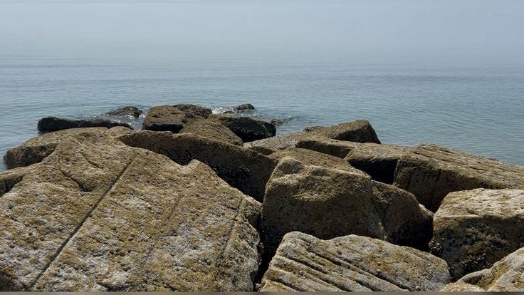 There’s a certain mixture of hope and fear in reaching my hand so far into the sea without knowing its true depth. These rocks might hide something more between them than the offerings Aphrodite spits up for a glimpse at my fingertips. For a glimpse at fate. Do they belong here? When did these rocks emerge from the soft belly of the earth and gather themselves together and vow to hold each other for however long eternity lasts? There’s a boat out at sea. I climb onto the rocks and pull my knees to my chest. Aphrodite sleeps here. The sun beats my shoulders. He’s kissing and it will leave a mark. Do I belong here? Waiting for the rocks to learn my palms? If I hold them out long enough will the sun turn his face away or mark them also?